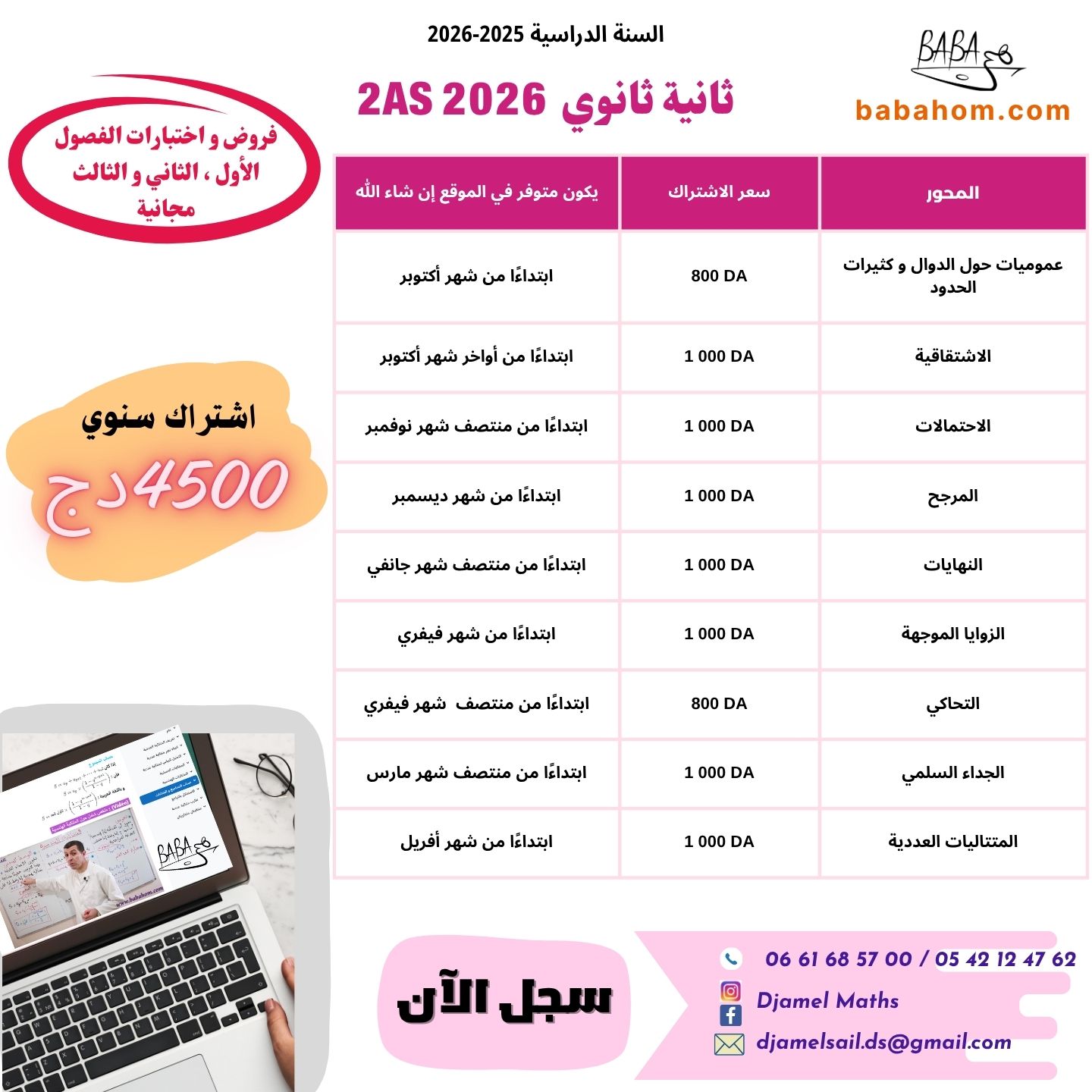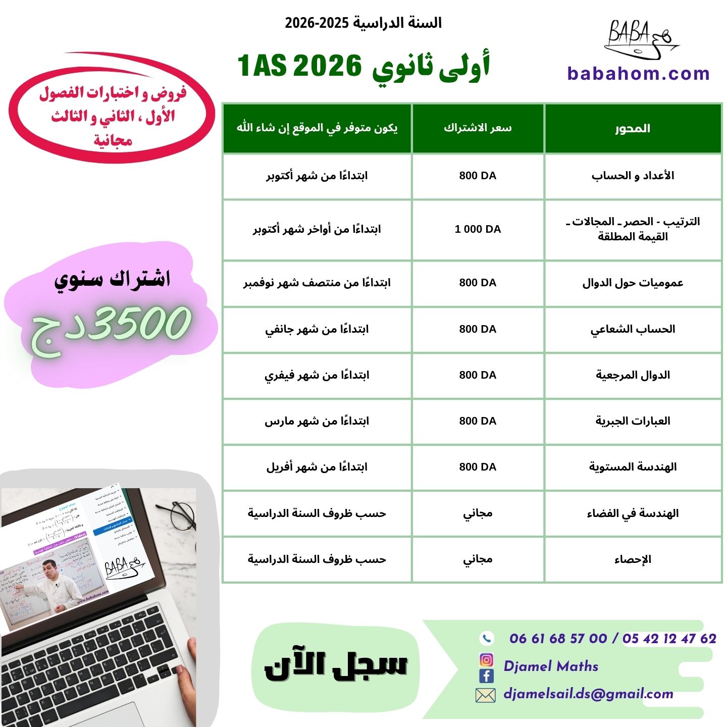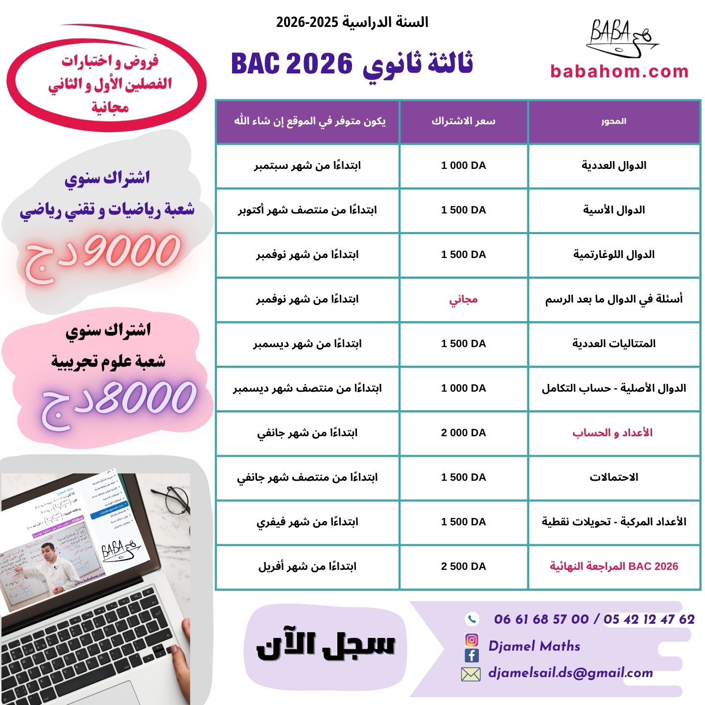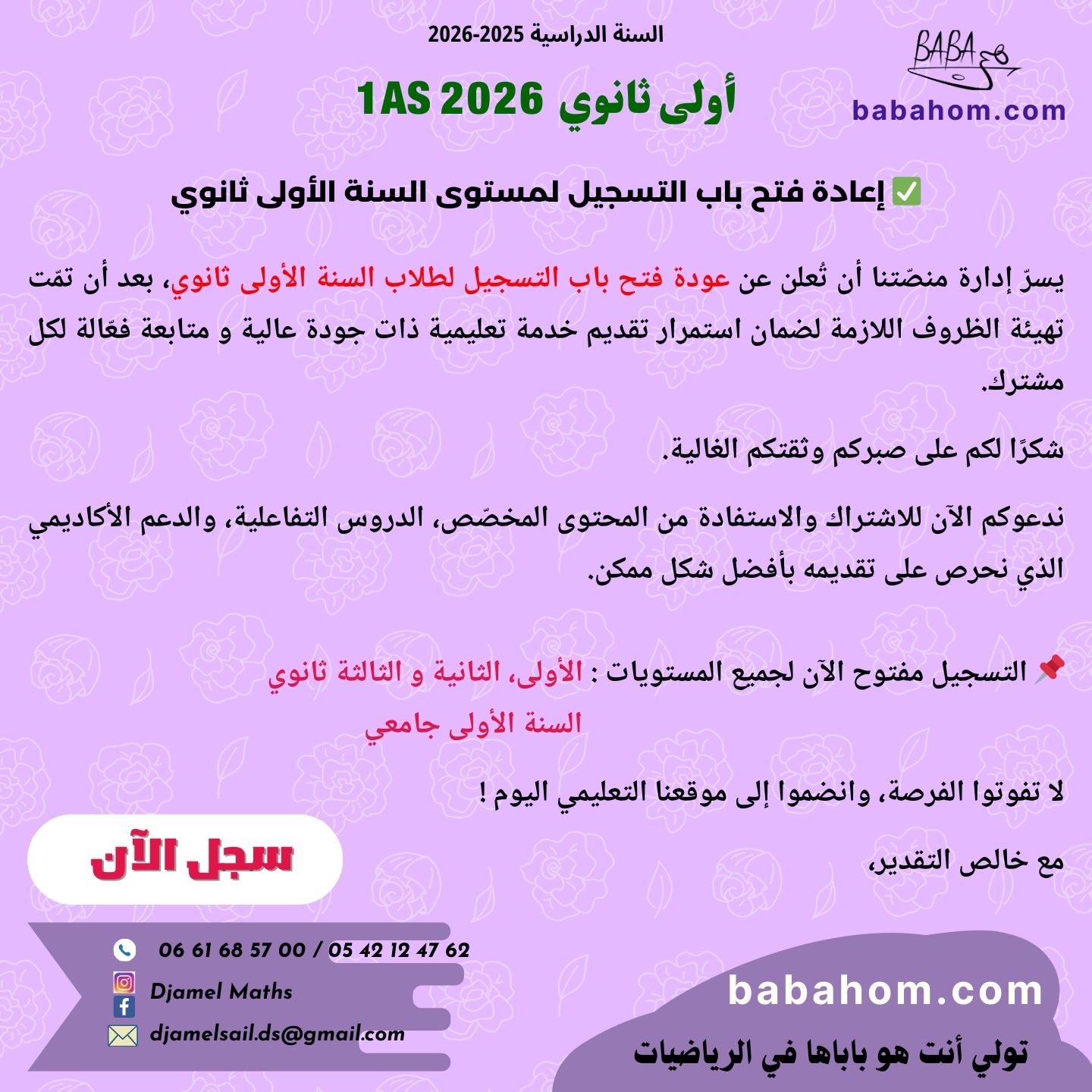 تجدون كيفية التسجيل و عروض سنوات الأولى ، الثانية و ثالثة ثانوي